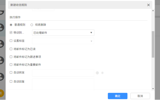 2.执行条件可以移动邮件,给邮件添加标签,设置自动转发等等。