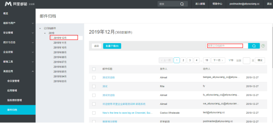 下载邮件操作日志,最长3个月,与日志保存期限一致 |