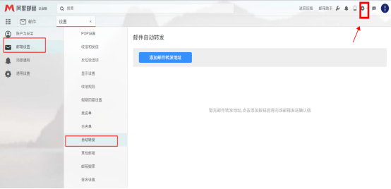 3、登录WEB端让检查邮箱是否有设置自动转发。(一般都是空的,除非自己有设置,如果不是自己设置的就要注意了)
